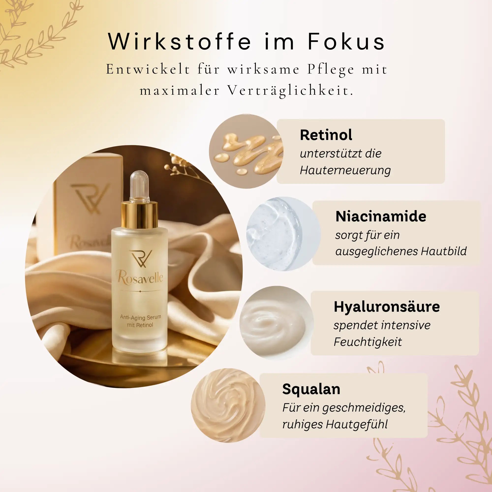 Das Retinol Serum lässt sich gut in eine bestehende Pflegeroutine integrieren. Besonders harmonisch ist die Kombination mit feuchtigkeitsspendenden und beruhigenden Pflegeprodukten.